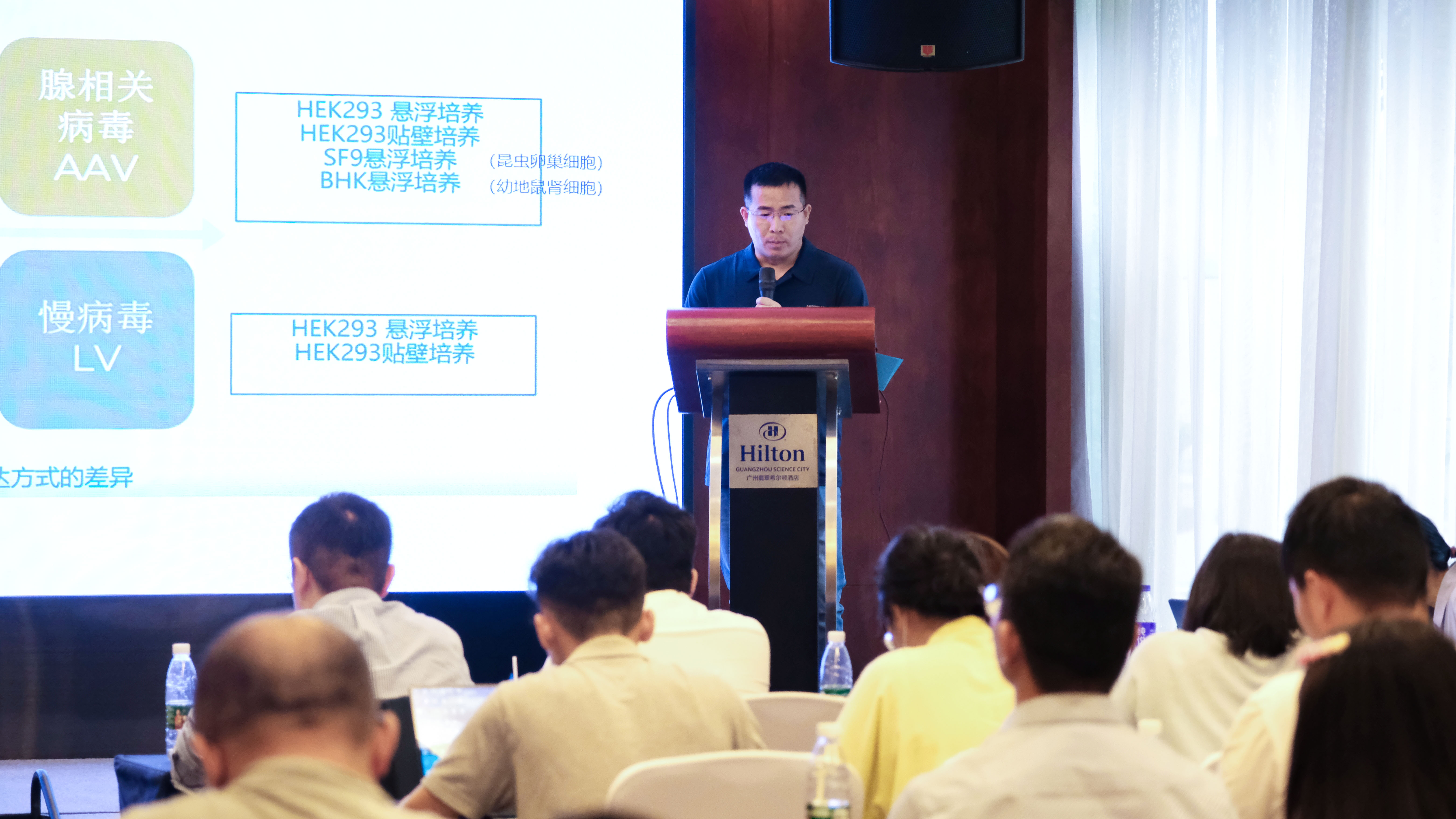 梅宇钦博士强调,产业化开发(CMC)是实现细胞基因治疗药物从实验室到患者的必经之路。他从递送体系、宿主细胞、上游放大方案、下游工艺建立、制剂方案和贯穿于CMC全流程的质量控制等方面为观众展示了深圳汉腾生物丰富的CGT开发经验。