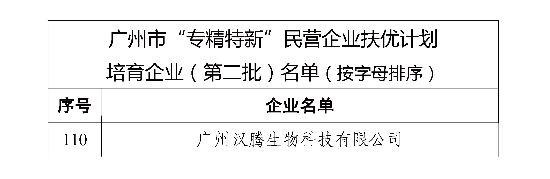 目前,汉腾生物已获得国家高新技术企业认定,并入选广东省“珠江人才计划”创新创业团队,获评“2021年度广东省知识产权示范企业”、“2021广州市‘专精特新’(两高四新)企业” 等。
